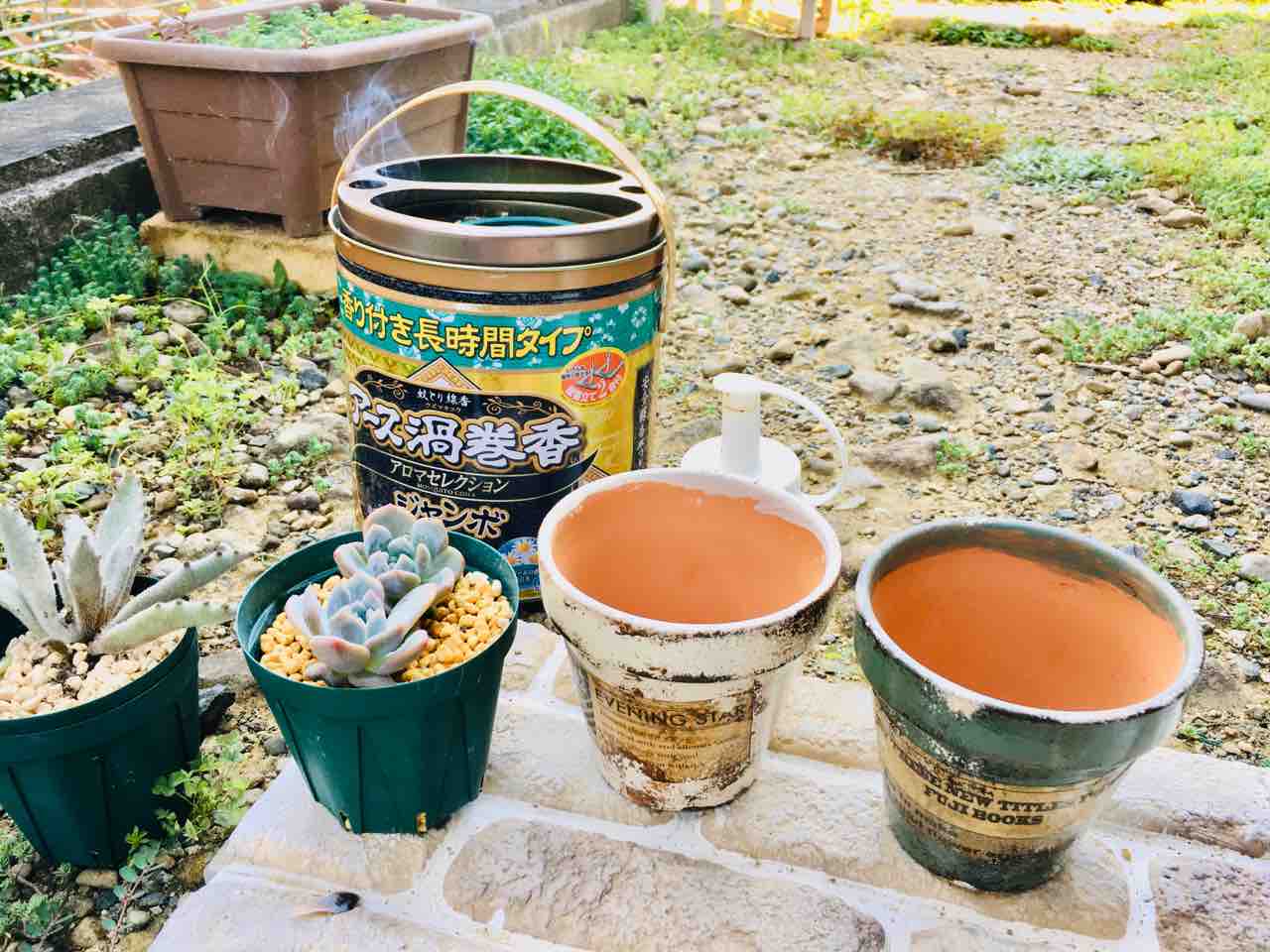 多肉の寄せ植えをしながら