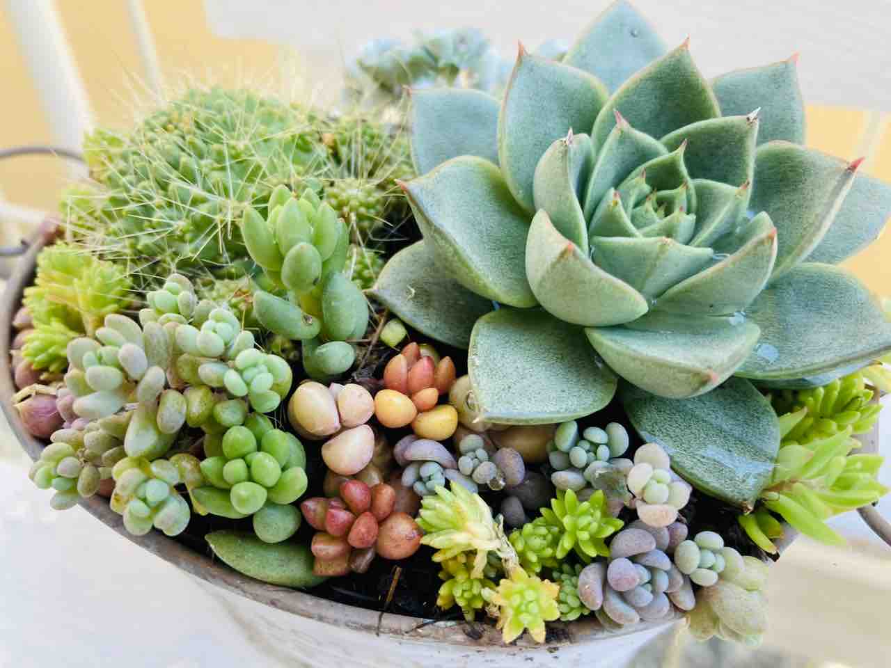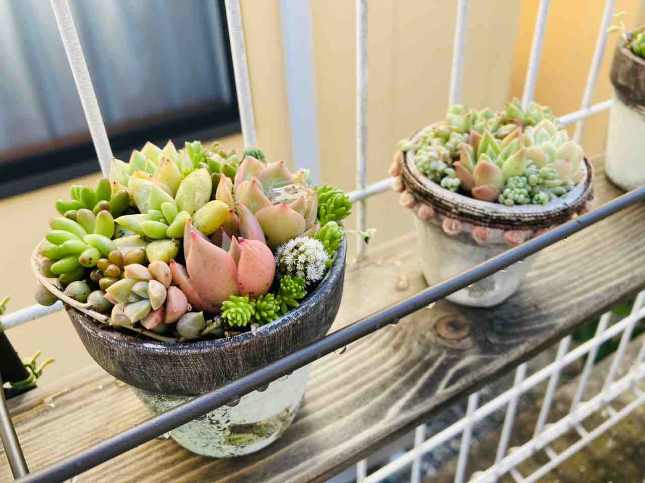 野外でちまちま多肉の寄せ植えを